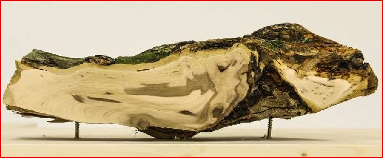 The process used an industrial sander to grind down logs, electronics, a skull and apparently whatever was handy in thin layers which were then photographed to create stop motion video. There are about 100 different photos.